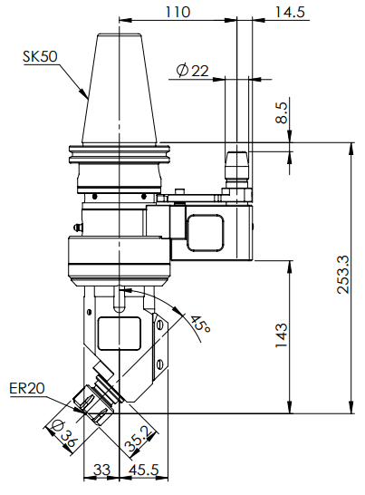 ◎?SK50-ER20 45° Angle Head (AHD Type)